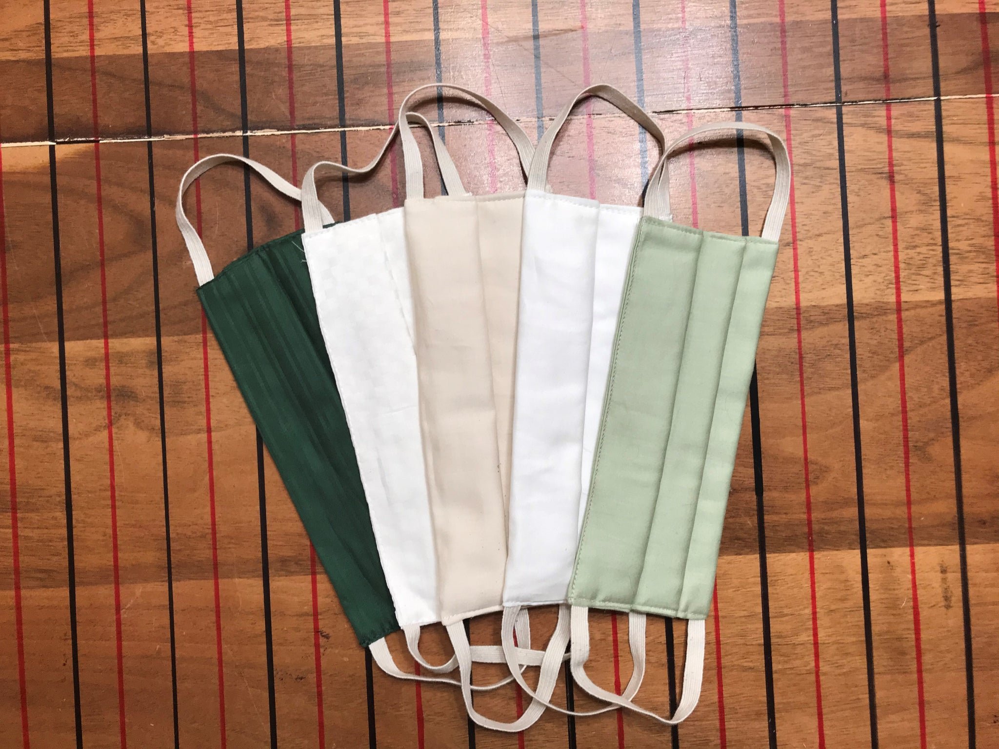 We are concerned that many retailers are selling face masks that are made from loose, porous fabrics. We make our masks with 3 layers of organic 250 or higher thread count sateen. This higher count is somewhat breathable but tight weave to prevent droplets from leaving your face. These somewhat breathable masks are meant to be secured with their natural elastic comfort straps. Ideally you want your mask to fit snugly, so we offer 7 sizes. Measure from top of left ear where it meets head in front across bridge of nose to other ear where it meets head. See diagram for your best fit. The elastic stretches for a better fit. Machine wash dry. Small women and teen XS 10-10.5" Child/teen XXS 9.5-10 Child XXXS 9-9.5 2-6 year olds