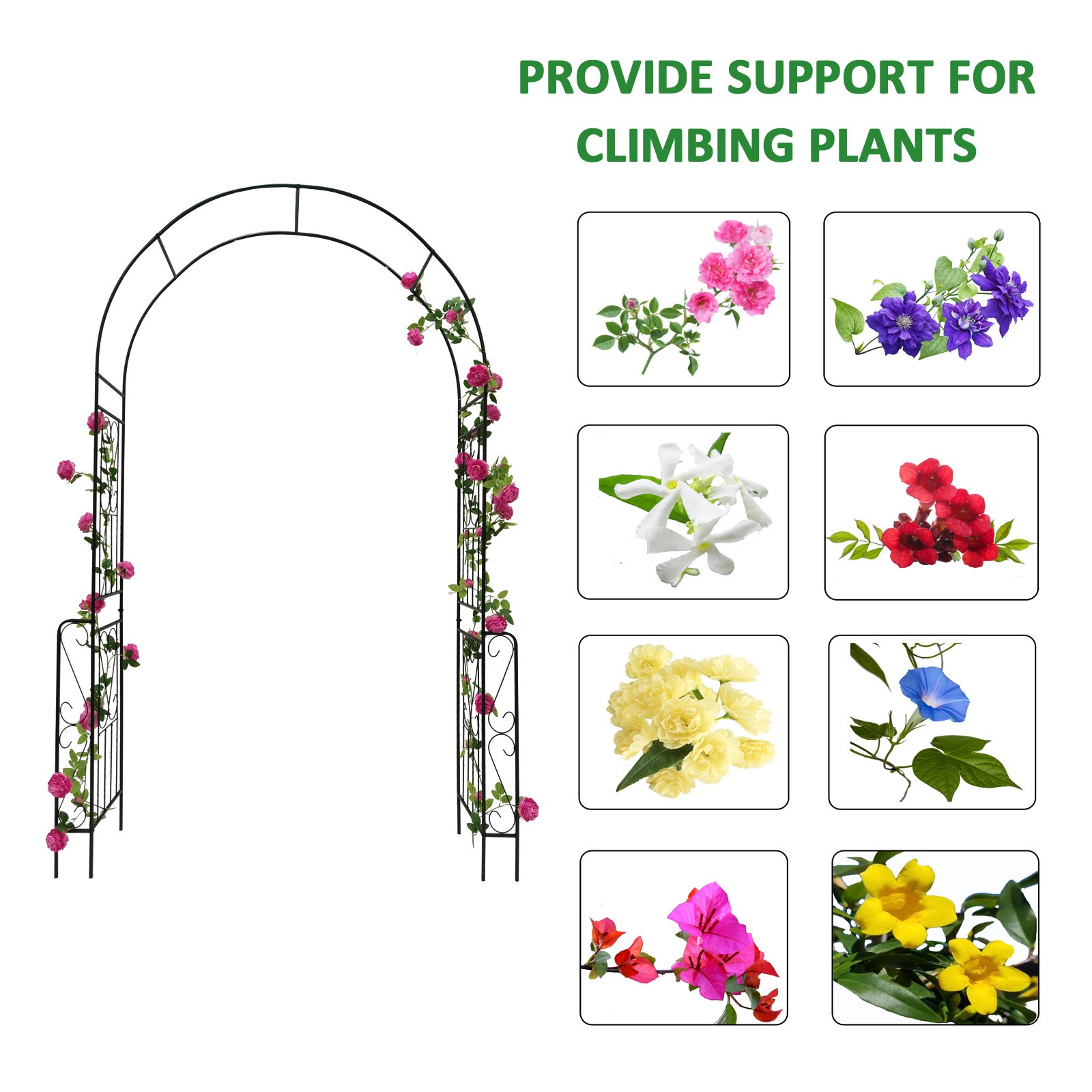 Package include: 1x Garden Metal Arch with screws, 1x Instruction (without green plants and flowers)