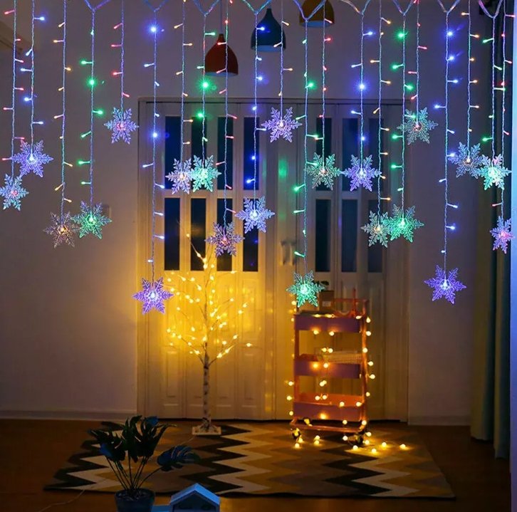 Christmas 96 LED Curtain Window Snowflake String Fairy Lights Waterproof Decor